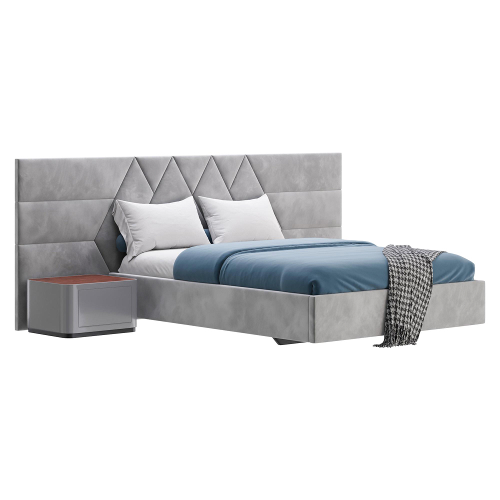 • Material Bett: Gepolsterter Stoff in Hellgrau